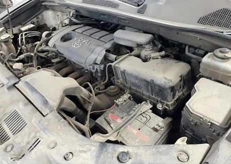 Primeiramente, vamos dar uma olhada no compartimento do motor. O modelo do motor é 1AR, um quatro cilindros em linha com 2,7 litros de cilindrada, acoplado a uma transmissão automática de 6 velocidades. O estado de todos os componentes no compartimento do motor é bom, exceto por um pouco de sujeira, não há problemas graves.