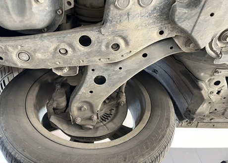 O subchassi é do tipo full frame, com suspensão independente MacPherson na dianteira. O braço de suporte inferior é feito de chapa de aço dupla estampada e soldada, e a junta esférica do braço de suporte inferior pode ser desmontada separadamente. Não foram encontrados problemas significativos durante a inspeção.