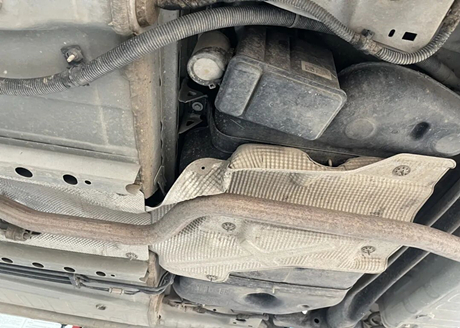 Look at the bottom of the fuel tank, there is a heat insulation tile between it and the exhaust pipe, and this position is also deformed.