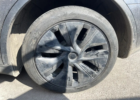As rodas do Tesla Model 3 são feitas de ferro, com capas decorativas de plástico na parte externa. Ao remover essas capas, é possível ver os parafusos de fixação dos pneus.