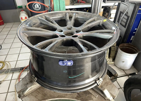 Um Tesla Model 3 chegou à loja porque o painel de instrumentos indicava baixa pressão no pneu traseiro esquerdo. Após inspeção, constatou-se que o pneu havia sido perfurado por um prego e que um técnico precisava removê-lo para o reparo.