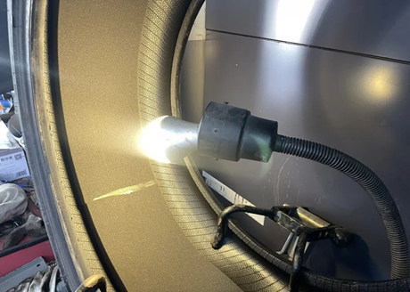 Os pregos não são grandes, e o especialista disse que usar remendos comuns de algodão isolante é suficiente. Se os pregos forem mais grossos, serão necessários pregos em formato de cogumelo, e o preço correspondente será maior. Como mostrado na figura abaixo, o remendo já foi aplicado e, em seguida, uma cola especial é pulverizada no local original onde o algodão isolante estava colado para fixá-lo.