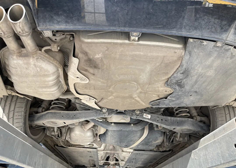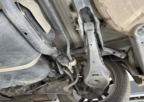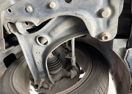 A parte dianteira possui suspensão independente MacPherson, o braço de suporte inferior é feito de chapa de aço estampada de camada única, com um design perfurado no meio, e a manga de eixo é feita de ferro fundido com uma camada de ferrugem na superfície que não afeta a segurança. A rótula da barra de direção, a rótula do braço de suporte inferior, a pequena barra de ligação, o amortecedor e outros componentes foram inspecionados e considerados em condições normais.