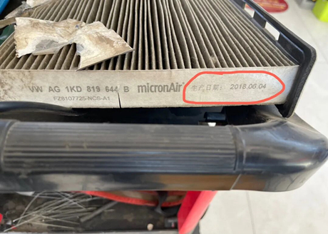 Ao observar novamente a lateral do filtro de ar condicionado, o técnico ficou momentaneamente sem palavras! Como mostra a figura abaixo, a data de fabricação do elemento filtrante é 2018, o que basicamente confirma que este é o filtro de ar condicionado original do carro e nunca foi substituído.