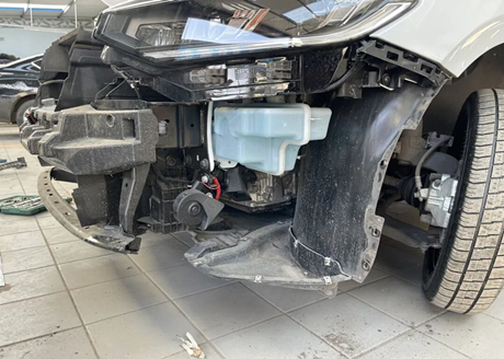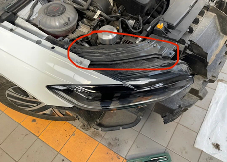 As shown in the picture below, this is a connecting iron block on the upper part of the headlight, which connects the front frame, fender, and body. Therefore, I can see that in some collision accidents, the headlight position appears to be more serious after collision. It is because of the design and materials used at this position that most cars have this structure, which is relatively weak.