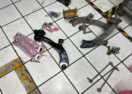 Ao ser questionado sobre o motivo da desmontagem do braço de suporte inferior, o técnico disse que foi devido a um ruído intenso no chassi e uma folga visível ao movimentar o volante. Após a inspeção, confirmou-se que o problema estava nos componentes do chassi. Não só o braço de suporte inferior precisava ser substituído, como também a barra de direção. barra estabilizadora , pequeno biela e a manga de borracha precisava ser substituída.